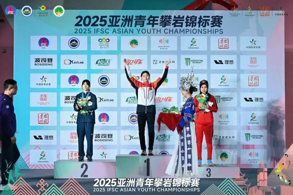 8月23日晚,在2025亚洲青年攀岩锦标赛U17女子速度赛决赛,贵州都匀运动员王春优璇以7.25秒的成绩为中国队夺得金牌。这也是中国队在本次攀岩亚青赛的首枚金牌。